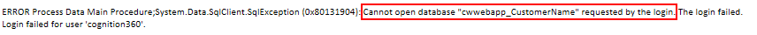 Error 4060, State: 1, Class: 11 or Cannot open database 'databaseName' requested by the login.