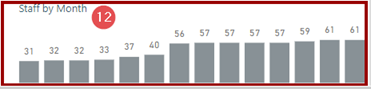 Staff by month - Graphical representation of staffing numbers over the last 12 months.