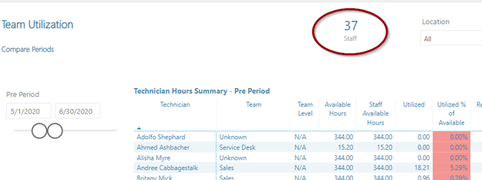 *If a technician’s Labor hours are low against span hours, it is a good idea to see where their time is being utilized. Are they in a lot of internal meetings, or capturing non-billable work etc. Look into Comparison to see what is going on with their time.