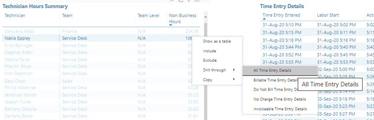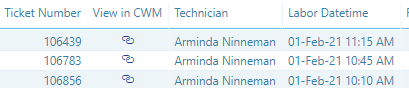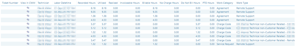 This drill through also shows many other useful columns, including a link to view the ticket in ConnectWise Manage.